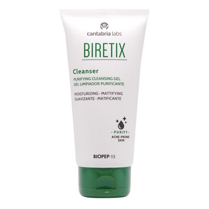 El Biretix Cleanser es un limpiador de uso diario que regula el exceso de grasa y reduce la proliferación de microorganismos. Está formulado con BIOPEP 15 y enriquecido con activos suavizantes y antioxidantes que eliminan las impurezas sin secar la piel. Ha sido testado bajo control dermatológico y oftalmológico.