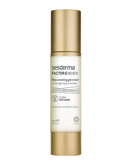 La Crema gel rejuvenecedor Factor G Renew de Sesderma es una crema antiedad que contiene factores de crecimiento y células madre vegetales, diseñada para estimular la regeneración celular, reducir las arrugas y recuperar la turgencia de la piel. Su nueva fórmula incorpora dos factores de crecimiento adicionales que promueven la producción de colágeno y elastina, logrando un efecto aún más eficaz.